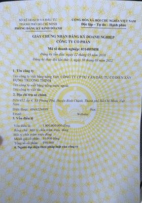 THÔNG TIN VỀ CÔNG TY TNHH TM DV THIẾT KẾ TƯ VẤN ĐẦU TƯ & XÂY DỰNG TRƯỜNG THỊNH